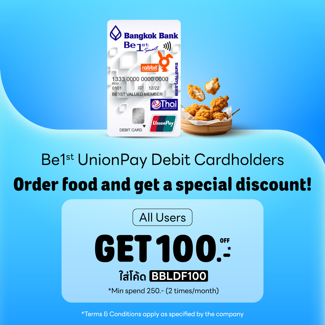 - Use code BBLDF100 for a ฿100 food discount