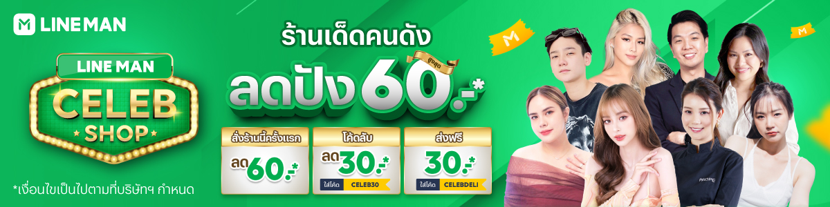 สั่งซ้ำกรอกโค้ด CELEB30 ลด ฿30* หรือ CELEBDELI ส่งฟรี ฿30*