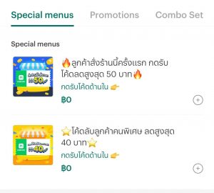 สามารถใช้สิทธิได้จนกว่าสิทธิที่ร้านค้ากำหนดเต็ม - สั่งเยอะลดเพิ่ม 50.- ลูกค้าสามารถรับส่วนลดได้จากหน้าร้านค้าที่ร่วมรายการโดยไม่ต้องกรอกรหัสส่วนส่วนลดเพิ่มเติม ส่วนลดมีมูลค่าสูงสุด 50.- สามารถใช้สิทธิได้จนกว่าสิทธิที่ร้านค้ากำหนดเต็ม สังเกตร้านค้าที่ร่วมรายการได้ที่มีสัญลักษณ์