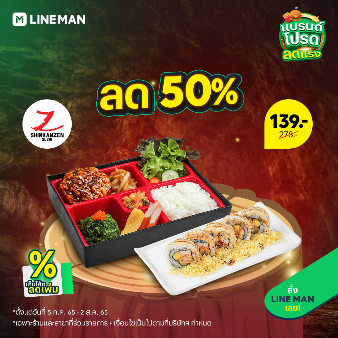 ล่ามื้ออร่อย 🍝 กับ LINE MAN แบรนด์โปรด ลดแรง ⚡️ ลดสูงสุด 60%* Bearhouse, Santa fe’ Steak, Bonchon, Punthai Coffee, Sizzler, Eat Am Are, Texas Chicken, The Pizza Company, ZEN, Shinkanzen Sushi, Mister Donut, Auntie Anne’s และอีกหลากหลายแบรนด์ดัง จัดโปรสุดปังตลอดทั้งเดือน 👀