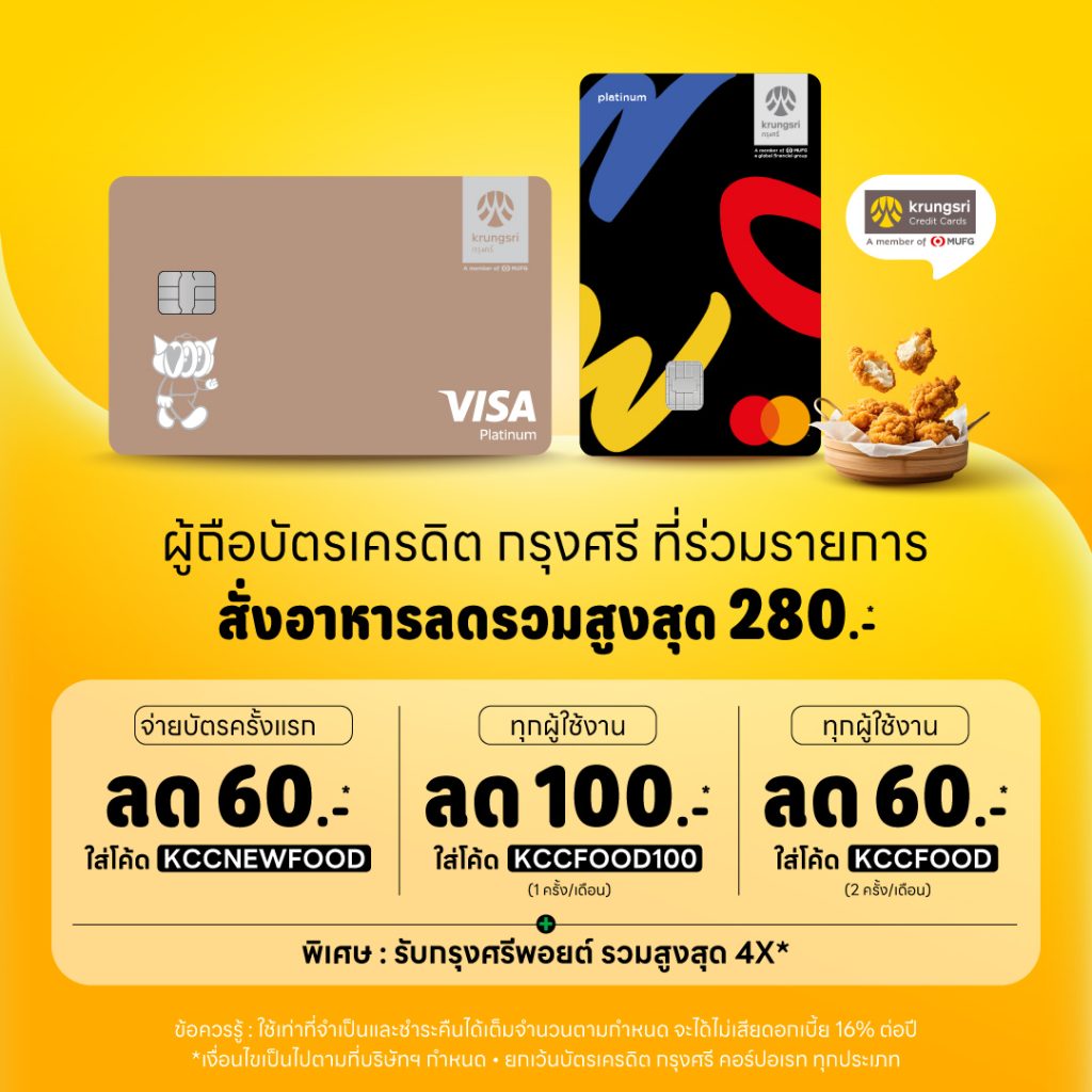 - จ่ายบัตรครั้งแรก รับส่วนลด 60 บาท ใส่โค้ด KCCNEWFOOD