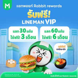 คุ้มกว่าใคร รับ LINE MAN VIP ฟรี! เมื่อแลกคะแนน Rabbit Rewards App